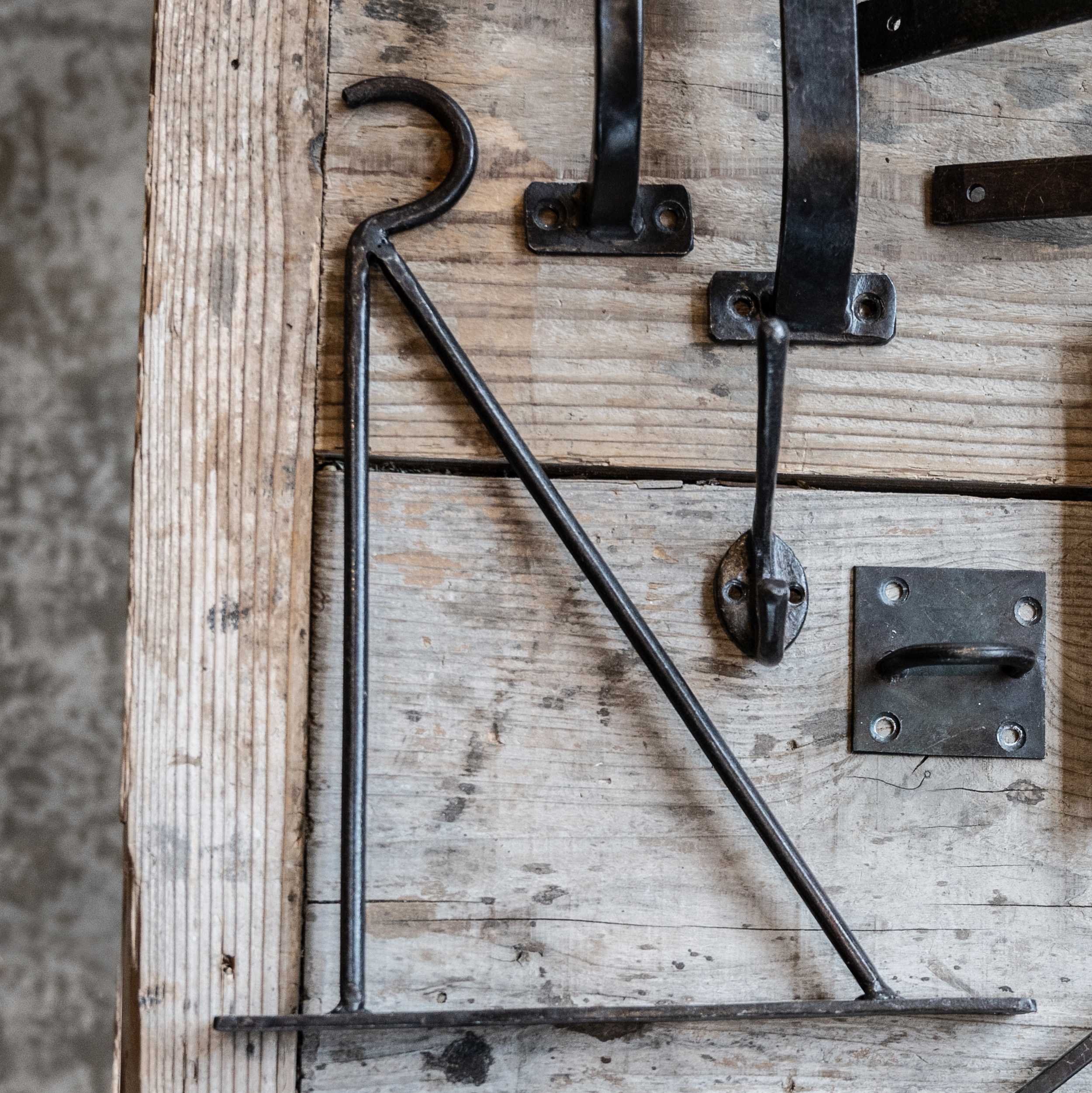 アンティークの照明をひっかけたり、マクラメに入れたグリーンを掛けたり、コートを掛けたり、それ自体は主張せずお部屋になじみます。アイアン製品のため使用状況によっては錆が出ることがございますが、その経年変化が風合いとして現れてきます。また、一点ずつ手作りで制作しているためサイズ、形状など個体差があるのも特徴です。